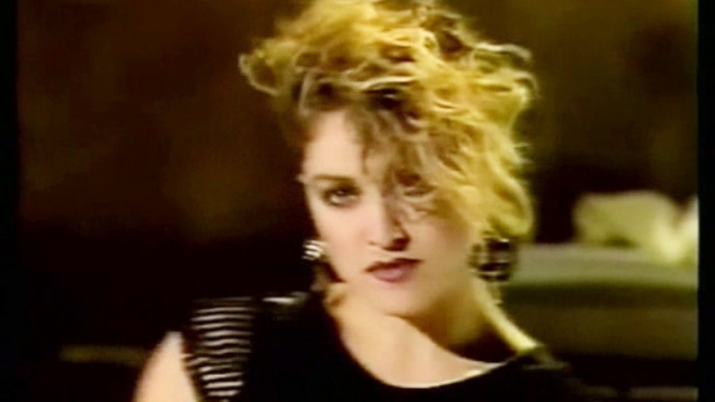 Madonna’s self-titled debut came out in 1983, and though it was not her first single, “Holiday” was her first hit. The single peaked at #16, but the simple video – just Madonna, her brother and her friend, performing a choreographed dance routine in a studio – failed to make an impression on MTV. Her next two videos, “Lucky Star” and “Borderline”, fared better. “Lucky Star” was essentially “Holiday 2.0” – Madonna, her brother and her friend, performing a choreographed dance routine, but on a set and with lighting! “Borderline” intercut a standard relationship storyline with black & white scenes of Madonna dancing, lip-syncing and generally being cool as shit.