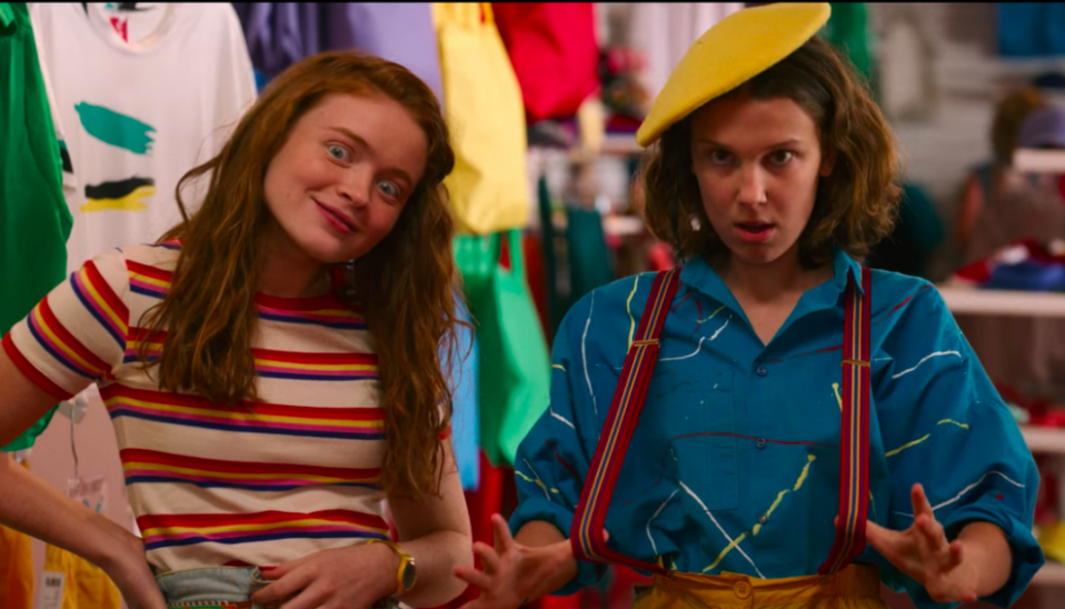 Elle and Max got off to a rocky start. Having been separated from Mike, Dustin and Lucas for most of season 2, Elle sees Max as an interloper and a potential rival for Mike’s affections (she doesn’t realize Max is actually attracted to Lucas). But at the start of season 3, the two have put those issues aside and are BFF’s. In the second episode of the season, “The Mall Rats”, Max takes Elle to the new Starcourt Mall and the two go shopping at The Gap, pose for some Glamour Shots and eat ice cream cones. Elle, encouraged by Max, breaks up with Mike (“I dump your ass!”) for lying to her. Later in the season, with Max’s step-brother Billy (along with one of his fellow lifeguards) seemingly missing, Elle and Max become amateur sleuths, using Elle’s powers and some old-fashioned detective work to solve the mystery. It’s an endearing, wholesome portrait of young female friendship that belies the danger that exists in Hawkins.