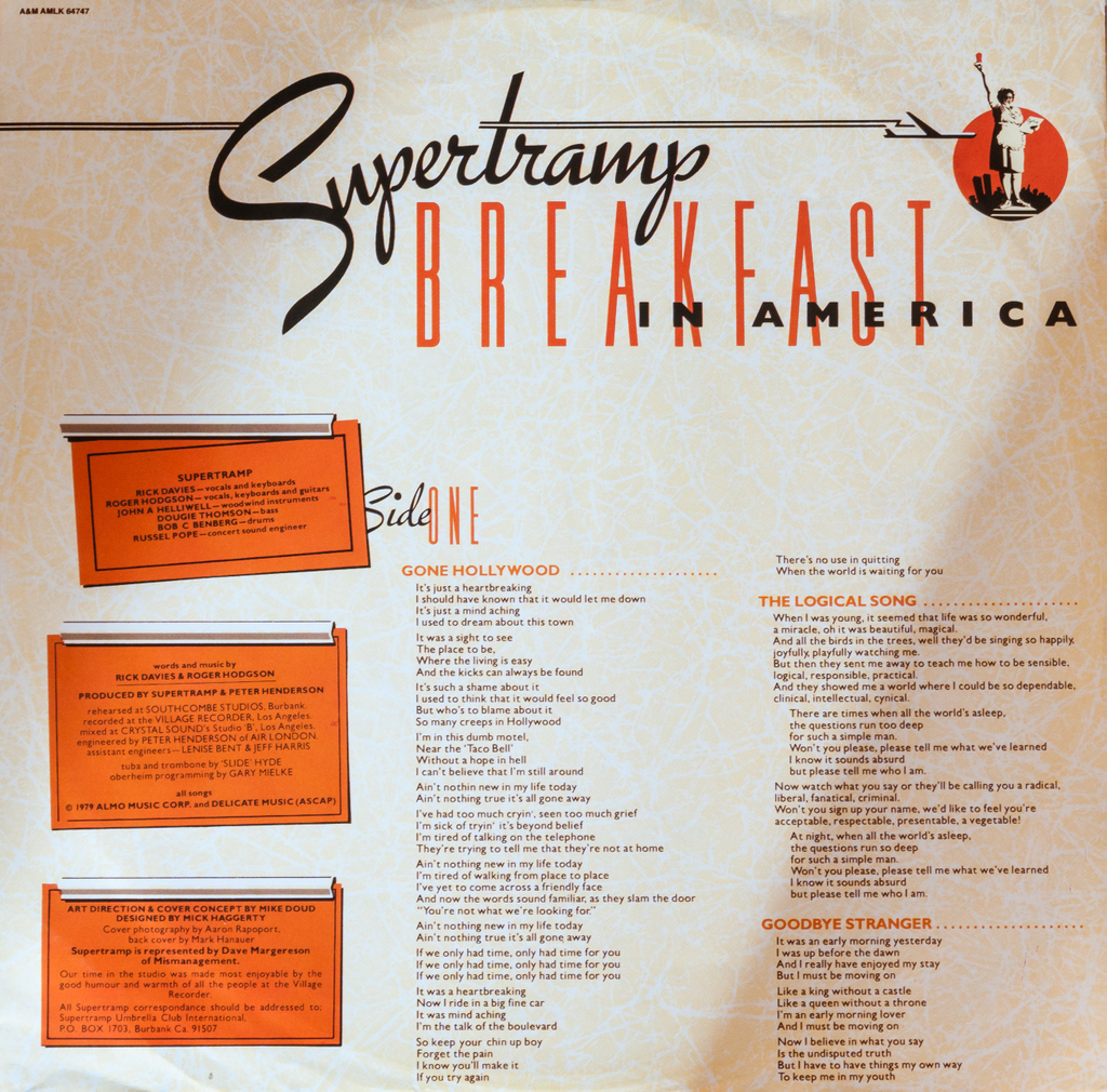 A conspiracy theory that gained some traction several years ago involved the 1979 Supertramp album Breakfast in America and the events of 9/11. The theory? That the cover of the album predicted the 9/11 attacks on the World Trade Center. According to the theory, Supertramp financier Stanley August Miesegaes was a Freemason who used the Breakfast in America cover art to provide details about a future terrorist attack on Manhattan. The evidence is flimsy and utterly circumstantial, as is typical for conspiracy theories: the glass of orange juice on the waitress’s tray represents the fire that enveloped the WTC; the U and the P in Supertramp, when viewed in a mirror, form a 9 and an 11; the name “Supertramp” is synonymous with “Great Whore”, as in the apocalyptic Babylon in the Book of Revelation; the inner sleeve depicts an airplane flying above the Twin Towers. It’s never clear what Miesegaes would have gained with his subliminal messaging, of course, but if proof could be provided, it wouldn’t be a theory anymore.