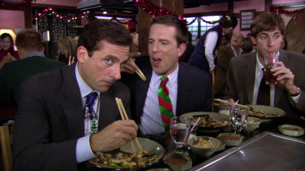 Edward Asner and Lily Tomlin in #12 – The X-Files, “How the Ghosts Stole Christmas”Steve Carell, Ed Helms, and John Krasinski in #16 – The Office, “A Benihana Christmas”Jamie Lee Curtis in #19 – The Bear, “Fishes”
