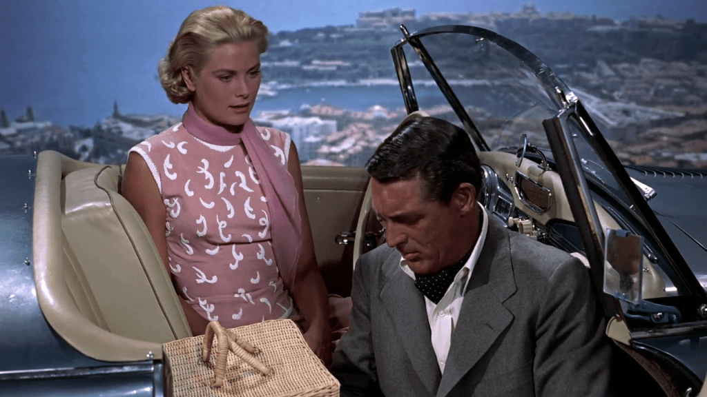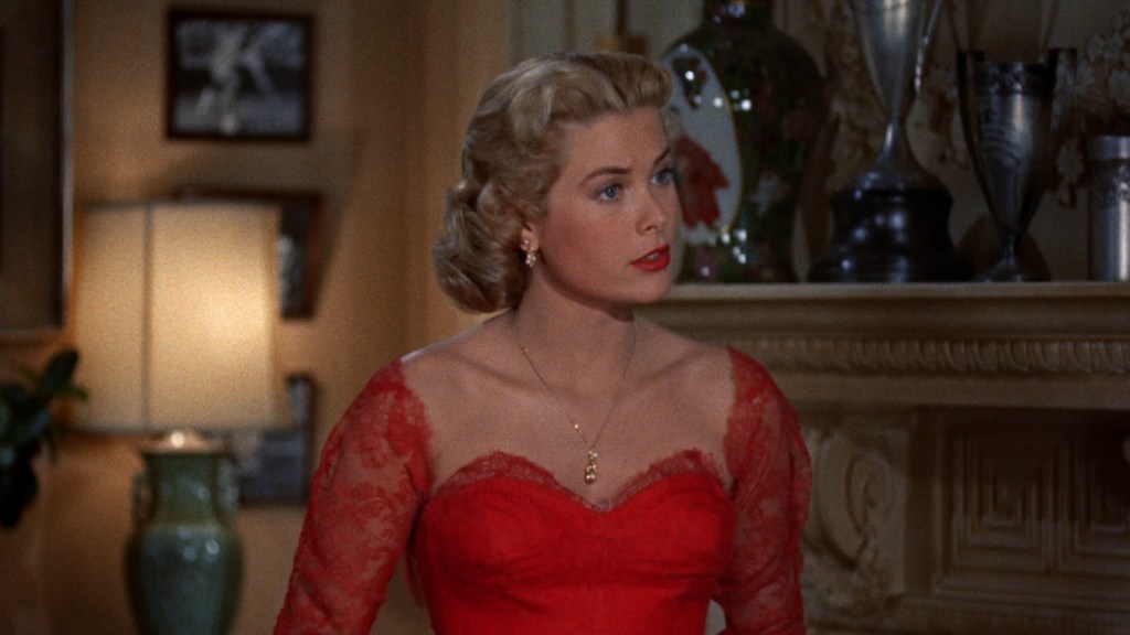 Kelly’s final Hitchcock film, To Catch a Thief, is a more light-hearted romp than Hitchcock’s usual fare. It’s technically a mystery, but one with lower stakes – John Robie, played by Cary Grant, is a former jewel thief lured out of retirement when a copycat burglar puts him in legal jeopardy. Robie teams up with an insurance adjuster, who reluctantly divulges the name of the woman most likely to be the cat burglar’s next target and arranges a meeting with her – and her socialite (seeing a trend here?) daughter Frances, played by Kelly. The plot is merely a pretext to put the two impossibly beautiful stars together, but they both play their roles to perfection. And Kelly, wearing some of the most exquisite costumes Edith Head ever created, never looked more stunning.